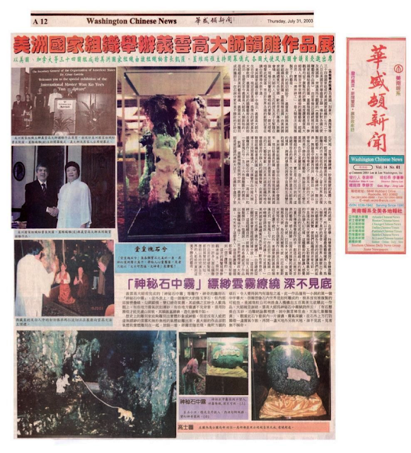 美洲國家組織祕書長皆由各國總統中優選出來,現任秘書長凱薩.蓋維瑞雅現領導美洲國家組織,該組織鑒於義雲高大師為世界人類做出的巨大藝術貢獻,因此美洲國家組織特地在華盛頓首府主辦大師的韻雕展覽,由美洲國家聯盟組織秘書長凱薩.蓋維瑞雅 (Cesar Gaviria)博士主持開幕儀式。此次展覽作品分兩大類:韻雕原作三件「神秘石中霧」、「高士圖」、和「堂皇塊石兮」及二十六件韻雕圖片的展示。
